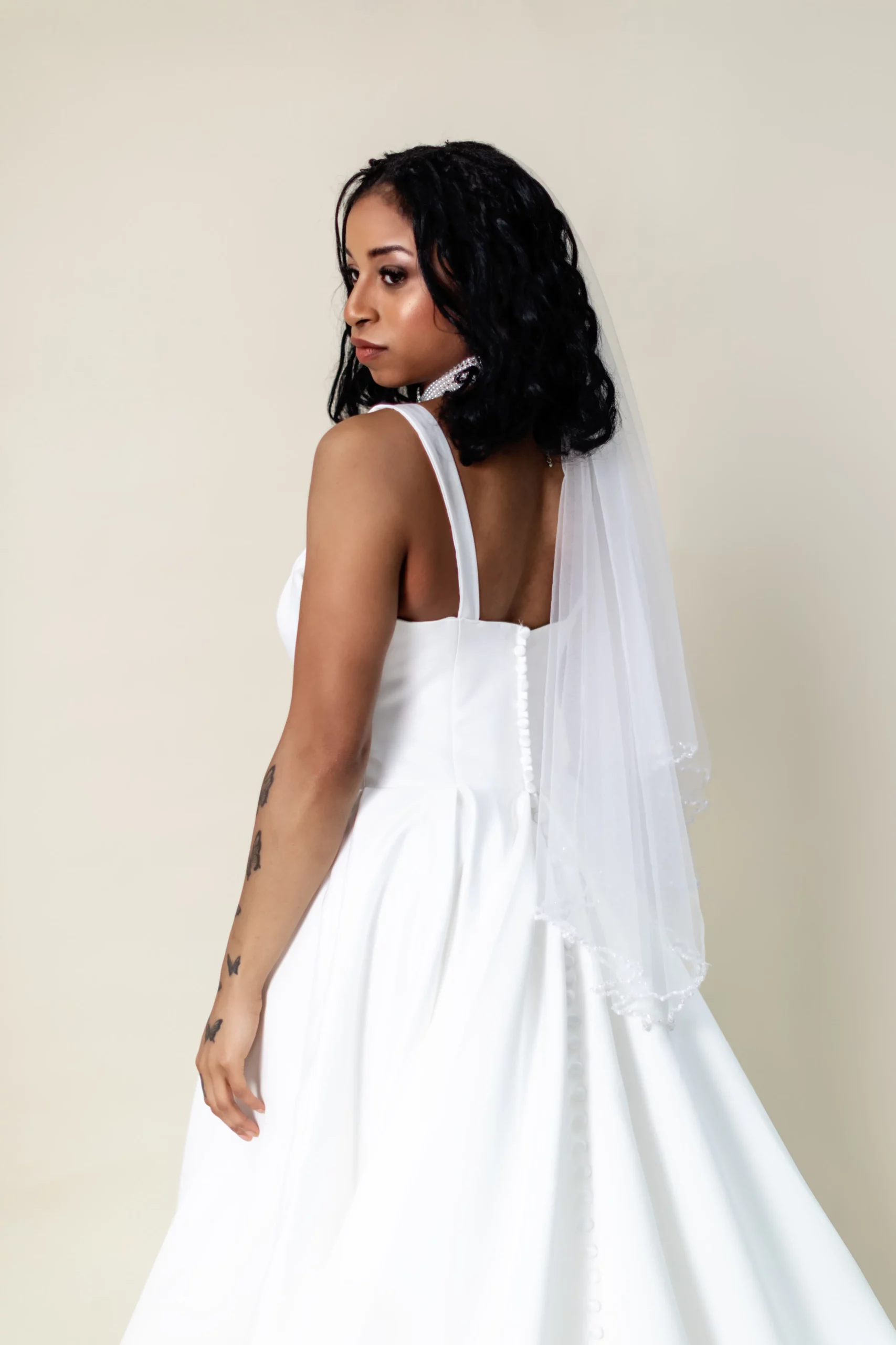 Delicate button detailing trails down the back for a refined, classic finish. With supportive straps and expert tailoring, Kate is a dream dress for brides seeking a look that blends tradition, sophistication, and undeniable grace.