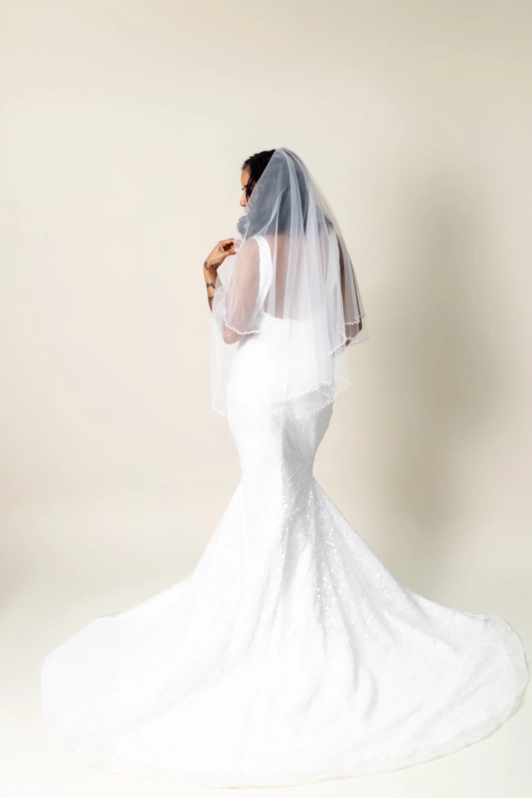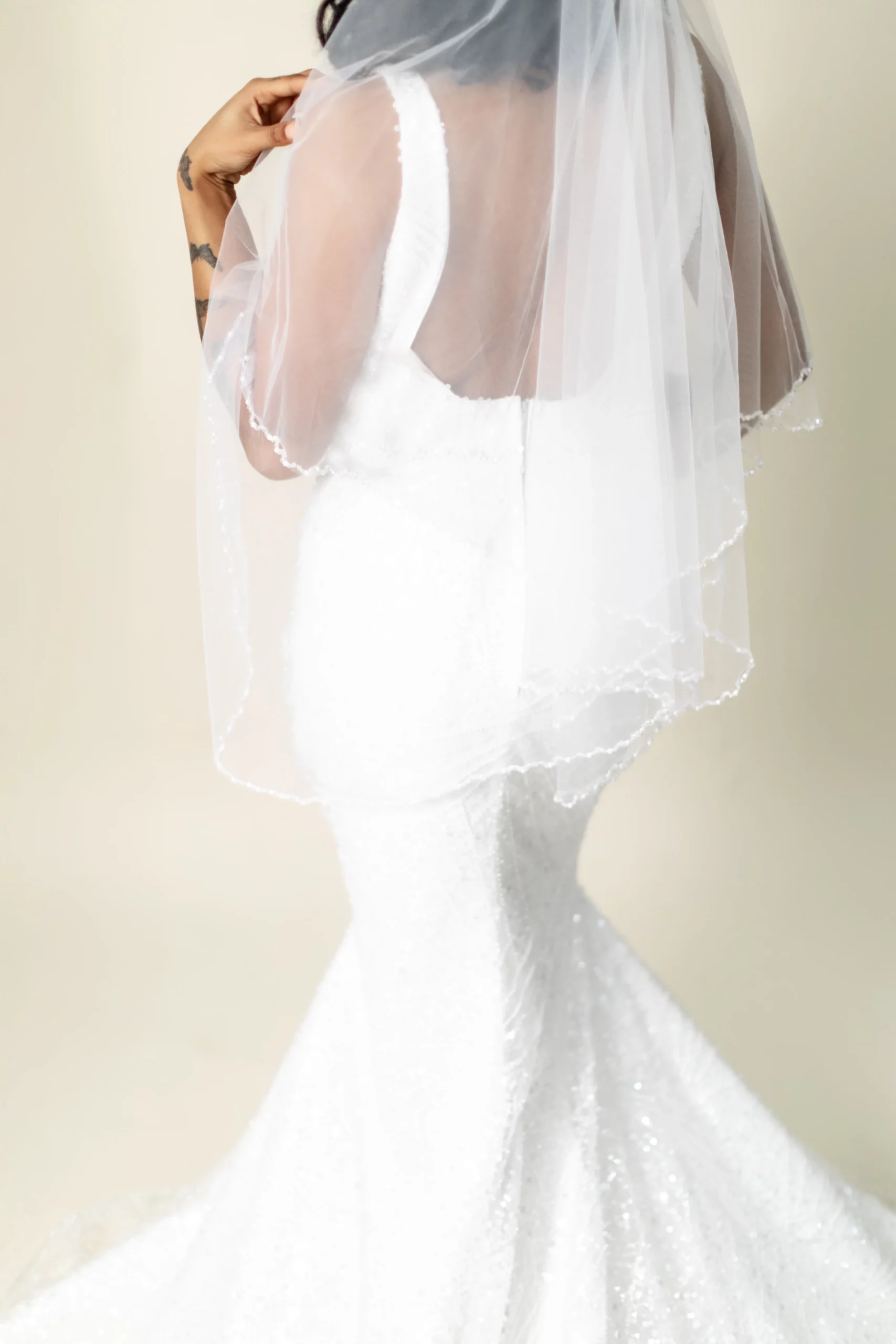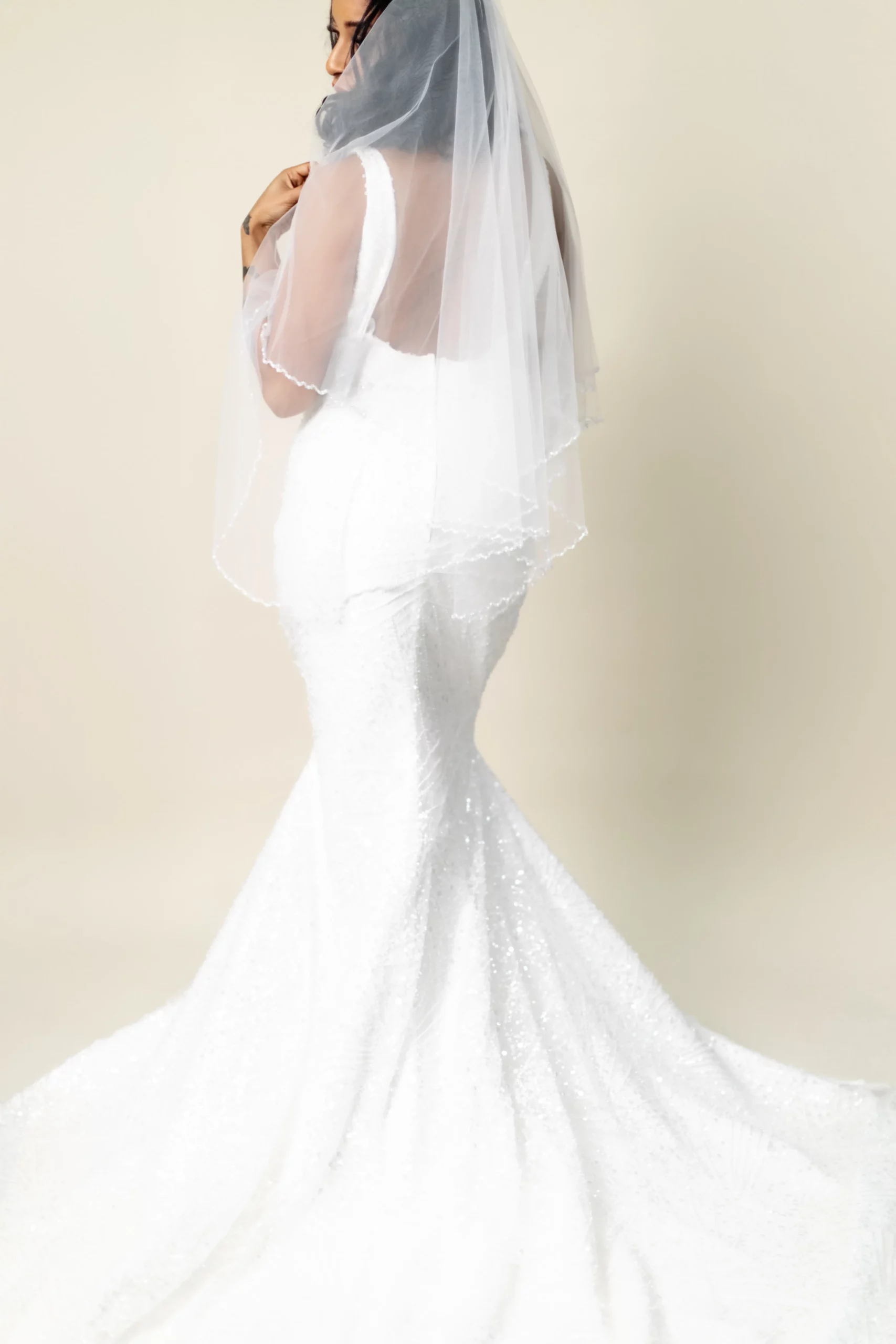 Crafted with meticulous attention to detail, Lucinda ensures you’ll sparkle from every angle—whether you’re walking down the aisle, taking golden hour photos, or dancing the night away.
